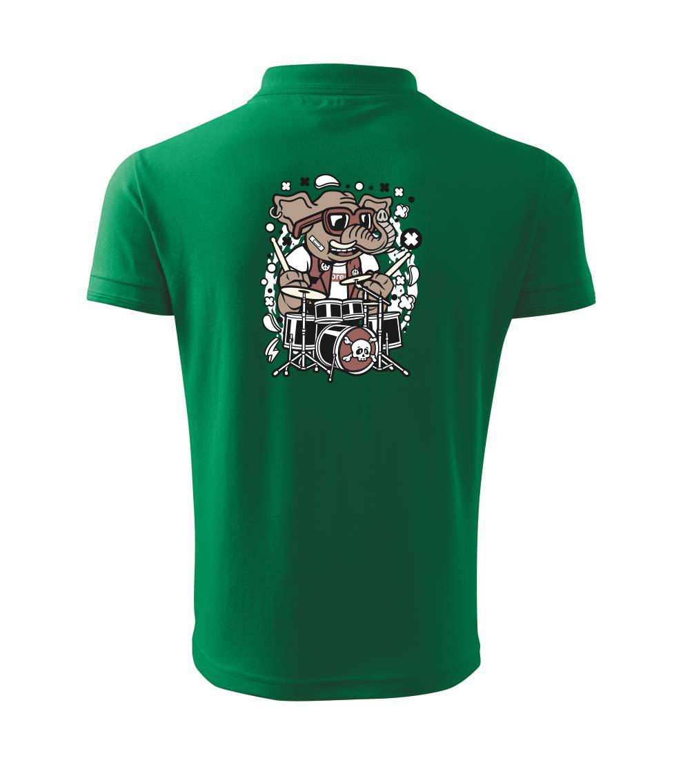 Tričko so slonom, ktorý hraje na bicie, je vhodný darček pre bubeníka.