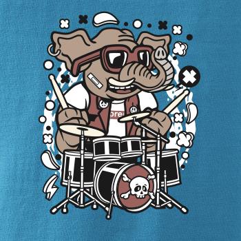 Tričko so slonom, ktorý hraje na bicie, je vhodný darček pre bubeníka.