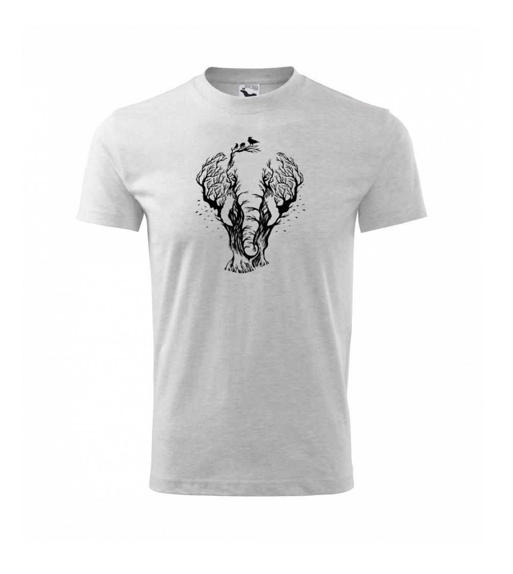 Tričko so slonom je vhodné pre všetkých milovníkov zvierat a prírody. Hlavný motív je strom, keď sa ale pozriete poriadne, tak je to slon. Vetvy stromu totiž tvoria obrazec slona. Tričko, na ktorom je zviera je vhodný darček pre milovníka prírody.