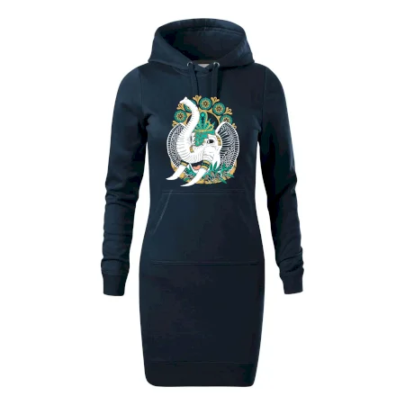 Dámske mikinové šaty MALFINI Snap 419 sú ideálnou voľbou pre ženy, ktoré hľadajú pohodlný a štýlový kúsok na voľný čas alebo každodenné nosenie. Ľahko vypasovaný strih s bočnými švami podčiarkuje ženskú siluetu, zatiaľ čo kapucňa s podšívkou a sťahovacou šnúrkou dodáva ležérny vzhľad. Šaty majú dĺžku nad kolená a sú vybavené našitým vreckom v štýle „klokanky“. Materiál je mäkký a príjemný na dotyk grâce à smesi bavlny a polyesteru s nepočesanou vnútornou stranou.