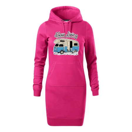 Dámske mikinové šaty MALFINI Snap 419 sú ideálnou voľbou pre ženy, ktoré hľadajú pohodlný a štýlový kúsok na voľný čas alebo každodenné nosenie. Ľahko vypasovaný strih s bočnými švami podčiarkuje ženskú siluetu, zatiaľ čo kapucňa s podšívkou a sťahovacou šnúrkou dodáva ležérny vzhľad. Šaty majú dĺžku nad kolená a sú vybavené našitým vreckom v štýle „klokanky“. Materiál je mäkký a príjemný na dotyk grâce à smesi bavlny a polyesteru s nepočesanou vnútornou stranou.