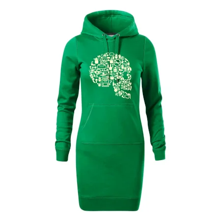 Dámske mikinové šaty MALFINI Snap 419 sú ideálnou voľbou pre ženy, ktoré hľadajú pohodlný a štýlový kúsok na voľný čas alebo každodenné nosenie. Ľahko vypasovaný strih s bočnými švami podčiarkuje ženskú siluetu, zatiaľ čo kapucňa s podšívkou a sťahovacou šnúrkou dodáva ležérny vzhľad. Šaty majú dĺžku nad kolená a sú vybavené našitým vreckom v štýle „klokanky“. Materiál je mäkký a príjemný na dotyk grâce à smesi bavlny a polyesteru s nepočesanou vnútornou stranou.
