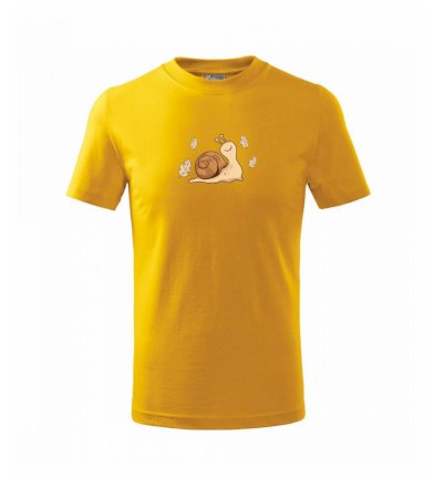 Detské tričko strednej gramáže s bočnými švami. Úzky priekrčník s prídavkom 5% elastanu. Vnútorná časť zadného priekrčníka začistená tkanou páskou. Spevnený ramenný šev.