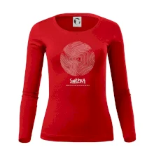 Tolerantnejšie priliehavý dámsky strih, ktorý je vhodný pre všetky typy postavy, ideálna dĺžka rukávov a konzervatívny výstrih zakončený rebrovaním, ktoré skvele drží tvar.
