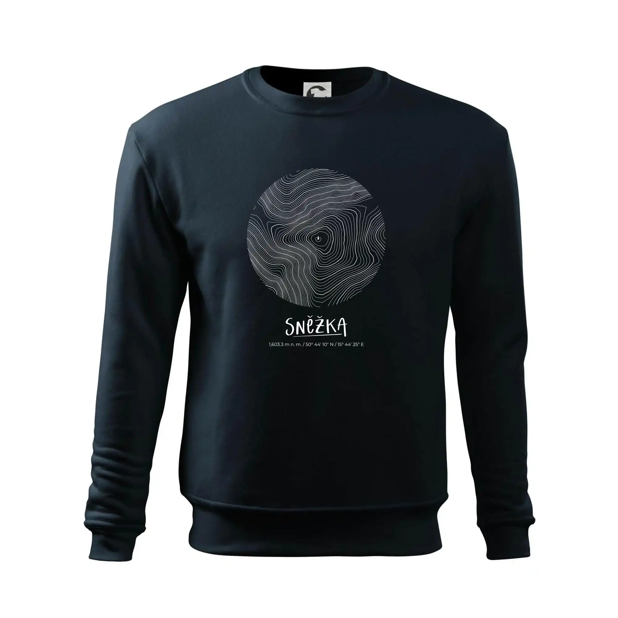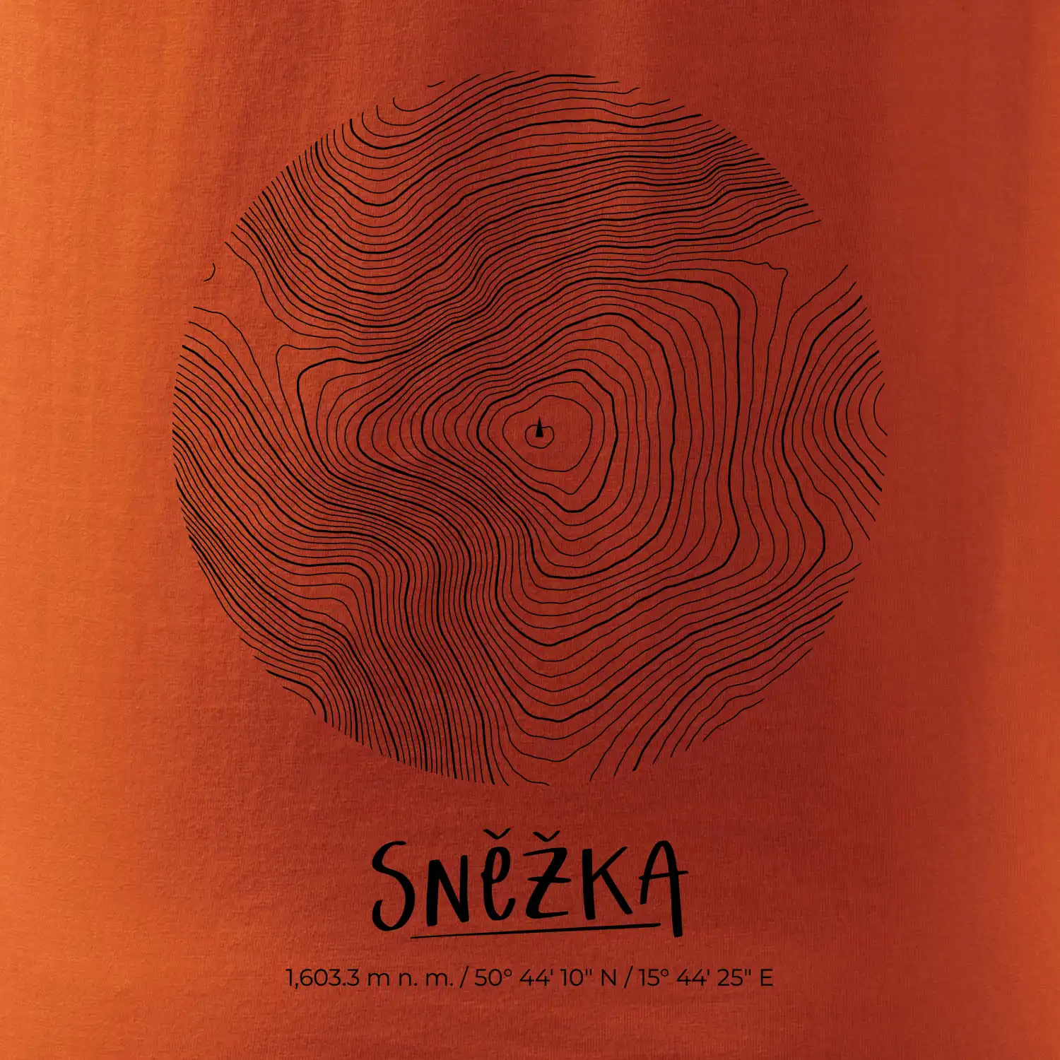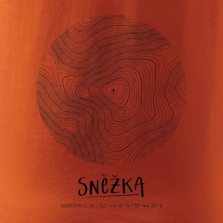 Přeneste si majestátnost nejvyššího českého vrcholu přímo na hruď. Tento design představuje Sněžku v netradičním pojetí, kde se precizní topografické linie setkávají s čistou geometrií kruhu. Je to dokonalá rovnováha mezi technickým nákresem a estetickým doplňkem pro každého milovníka hor.