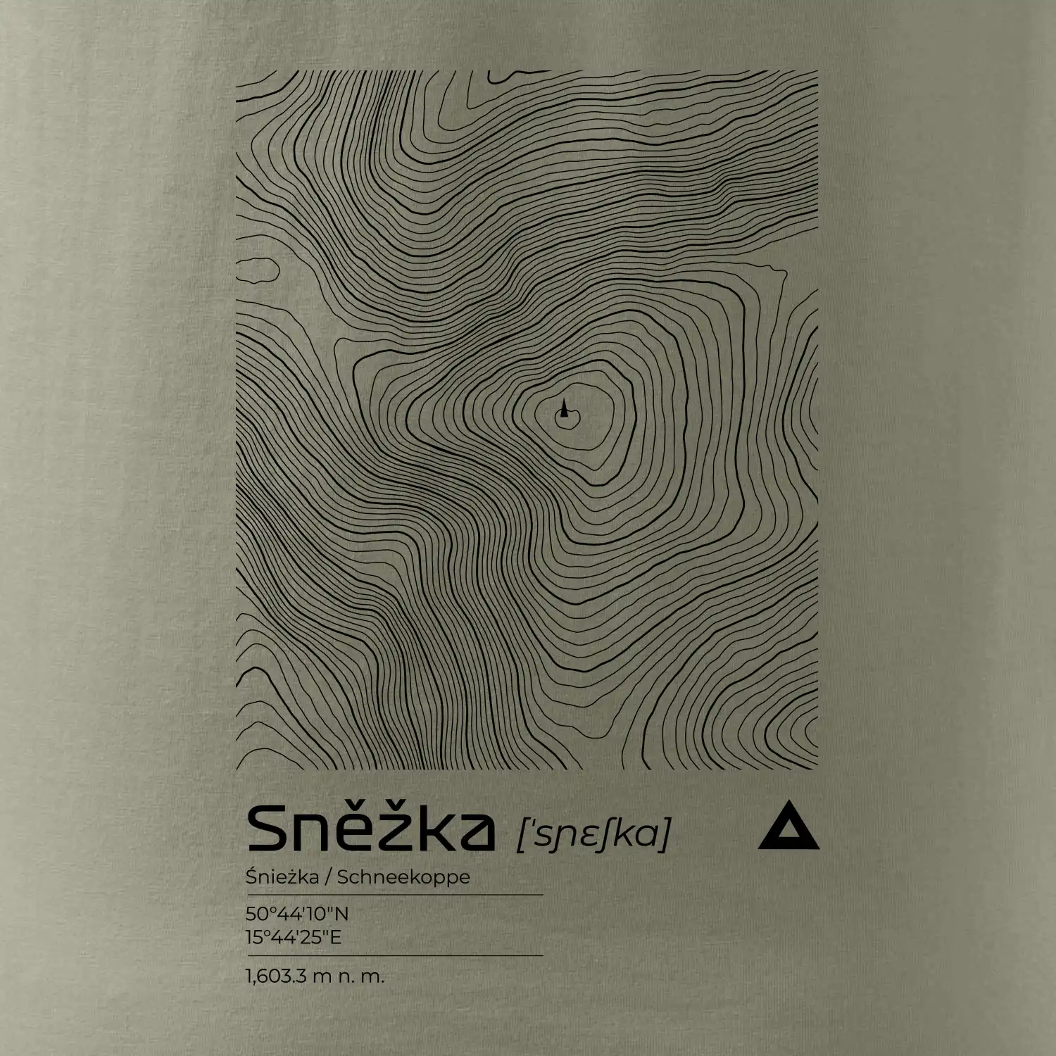 Designový unikát: Sněžka v topografických liniích