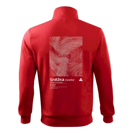 Dominantním prvkem je geometrický obdélník, který slouží jako výřez z topografické mapy. Uvnitř něj se rozplétá hustá síť vrstevnic, které věrně vykreslují unikátní reliéf Sněžky a jejího okolí. Tento kontrast mezi přísným tvarem obdélníku a organickými křivkami hor dává triku moderní, takřka umělecký nádech.