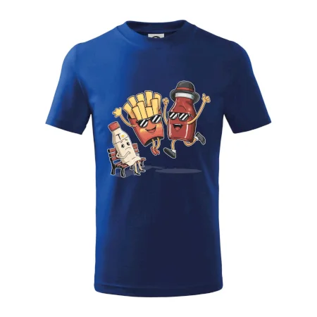 Detské tričko strednej gramáže s bočnými švami. Úzky priekrčník s prídavkom 5% elastanu. Vnútorná časť zadného priekrčníka začistená tkanou páskou. Spevnený ramenný šev.