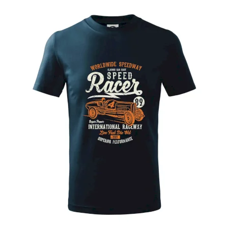 Detské tričko strednej gramáže s bočnými švami. Úzky priekrčník s prídavkom 5% elastanu. Vnútorná časť zadného priekrčníka začistená tkanou páskou. Spevnený ramenný šev.