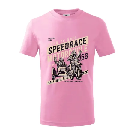Detské tričko strednej gramáže s bočnými švami. Úzky priekrčník s prídavkom 5% elastanu. Vnútorná časť zadného priekrčníka začistená tkanou páskou. Spevnený ramenný šev.