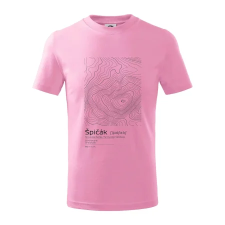 Detské tričko strednej gramáže s bočnými švami. Úzky priekrčník s prídavkom 5% elastanu. Vnútorná časť zadného priekrčníka začistená tkanou páskou. Spevnený ramenný šev.