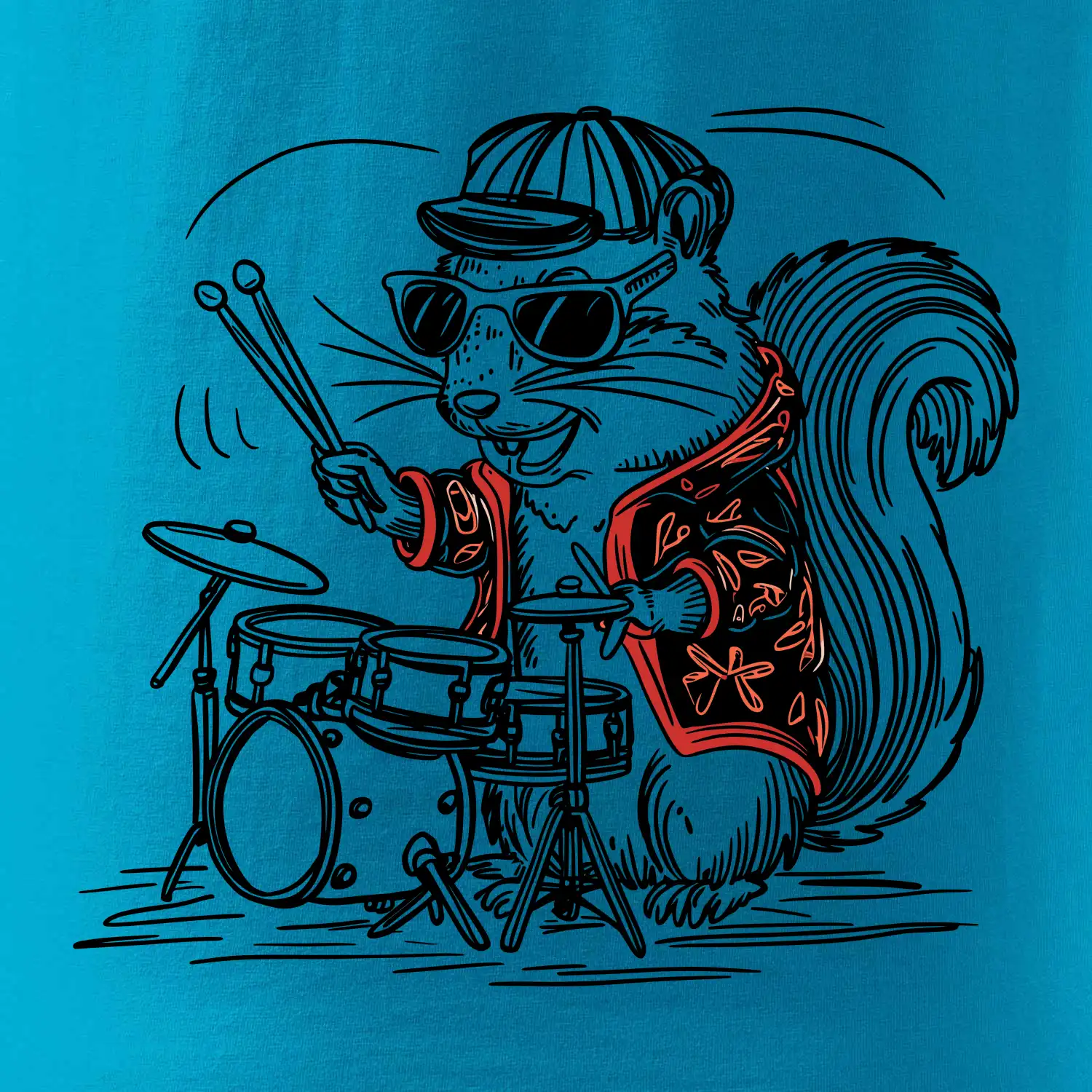 Squirrel playing drums