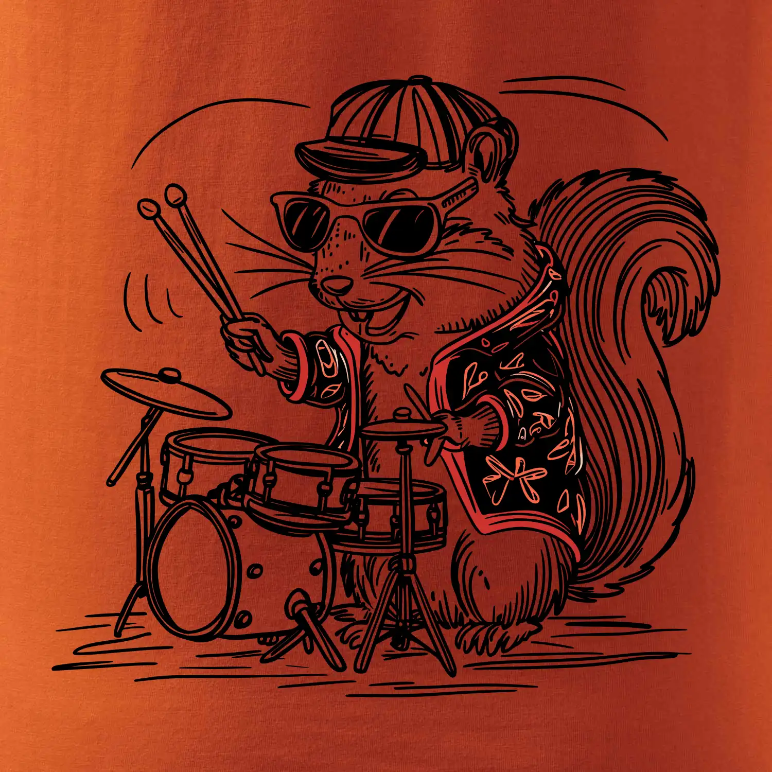 Squirrel playing drums