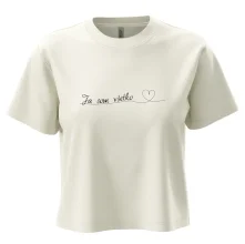 Trendové dámske tričko s veľmi krátkym rukávom, voľnejšieho strihu, v dolnom kraji všité do širokého lemu. Okrúhly priekrčník s úzkym lemom zo zhodného materiálu.