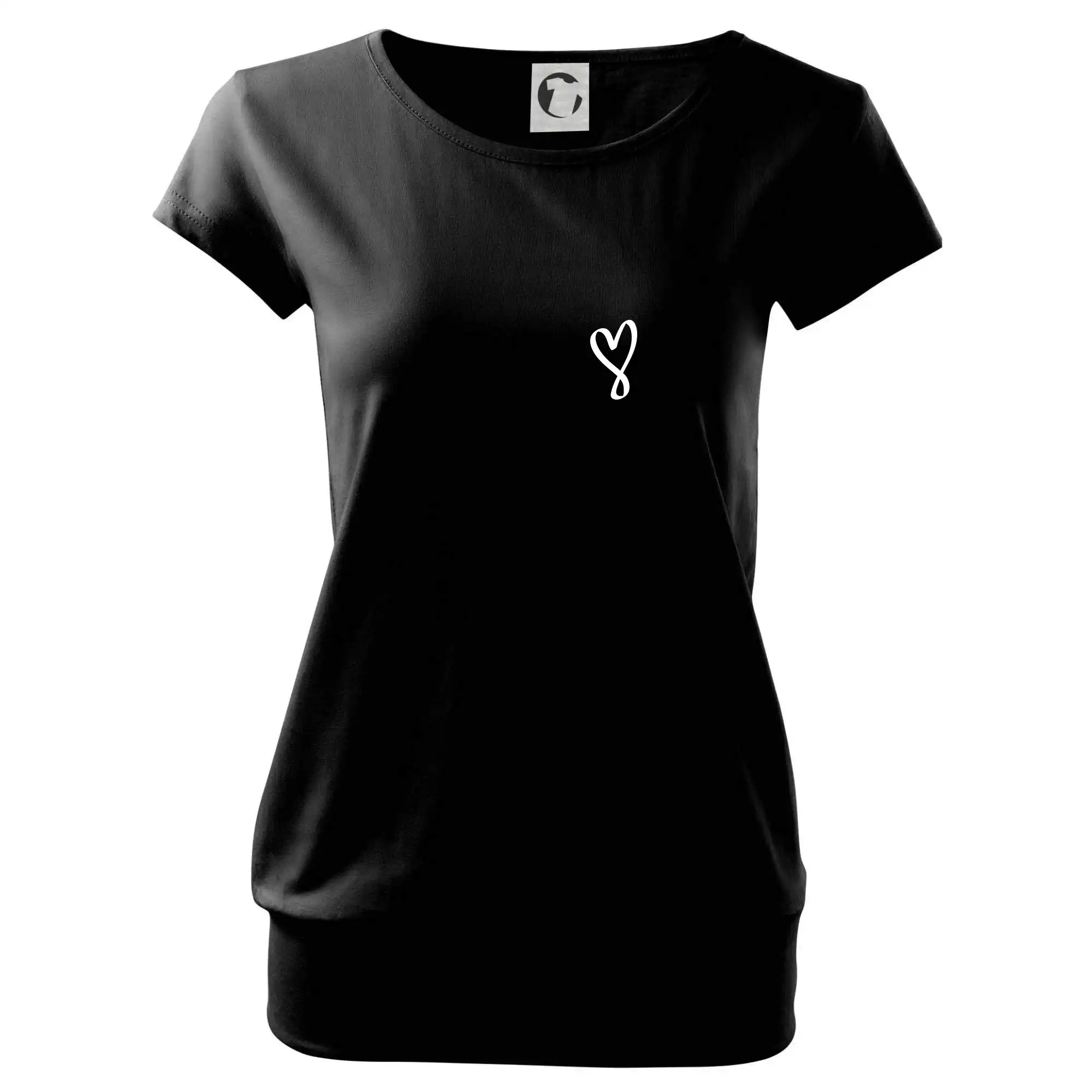 Trendové dámske tričko s veľmi krátkym rukávom, voľnejšieho strihu, v dolnom kraji všité do širokého lemu. Okrúhly priekrčník s úzkym lemom zo zhodného materiálu.
