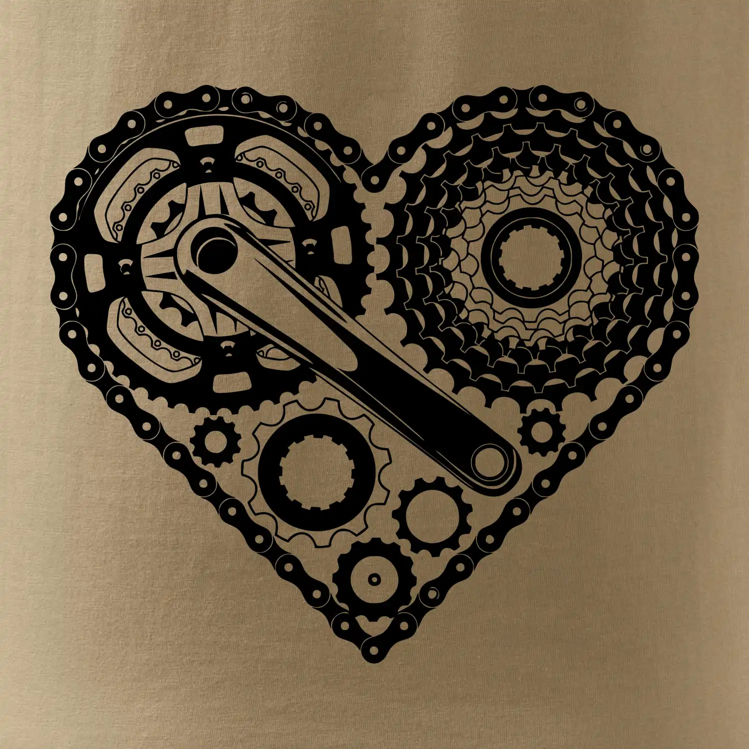 Tričko pre cyklistu, na ktorom je srdce plné cyklo dielov - reťaz, prehadzovačka, ozubené koleso...by mal potešiť všetkých cyklistov, ktorí jazdia srdcom. Cyklistické tričko ukáže, ako máte radi šport, najmä bicykel.