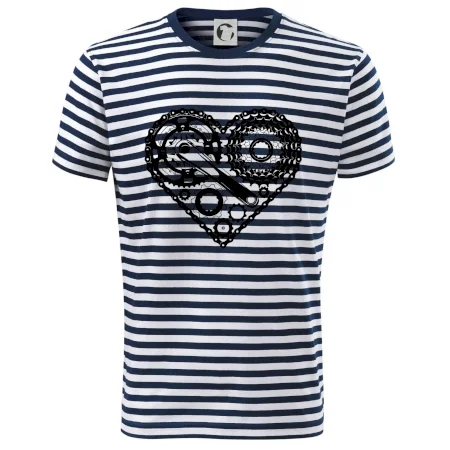 Tričko pre cyklistu, na ktorom je srdce plné cyklo dielov - reťaz, prehadzovačka, ozubené koleso...by mal potešiť všetkých cyklistov, ktorí jazdia srdcom. Cyklistické tričko ukáže, ako máte radi šport, najmä bicykel.