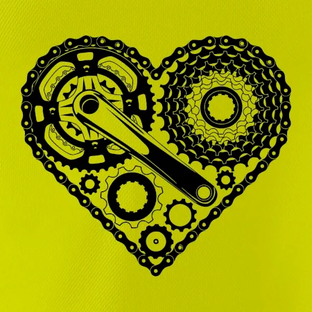 Tričko pre cyklistu, na ktorom je srdce plné cyklo dielov - reťaz, prehadzovačka, ozubené koleso...by mal potešiť všetkých cyklistov, ktorí jazdia srdcom. Cyklistické tričko ukáže, ako máte radi šport, najmä bicykel.