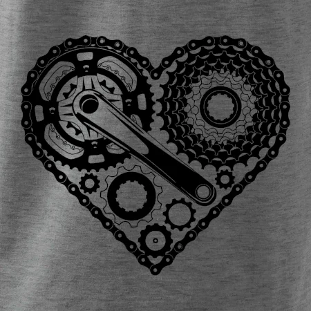 Tričko pre cyklistu, na ktorom je srdce plné cyklo dielov - reťaz, prehadzovačka, ozubené koleso...by mal potešiť všetkých cyklistov, ktorí jazdia srdcom. Cyklistické tričko ukáže, ako máte radi šport, najmä bicykel.