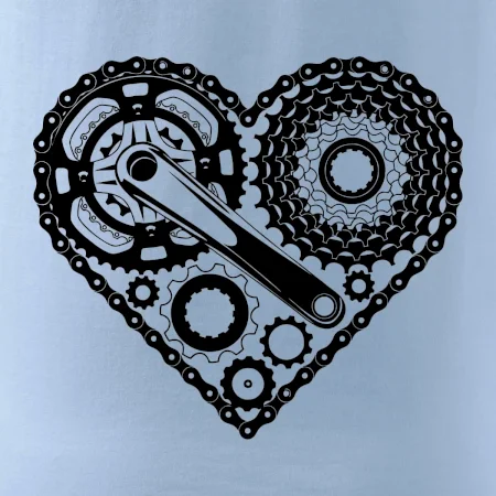 Tričko pre cyklistu, na ktorom je srdce plné cyklo dielov - reťaz, prehadzovačka, ozubené koleso...by mal potešiť všetkých cyklistov, ktorí jazdia srdcom. Cyklistické tričko ukáže, ako máte radi šport, najmä bicykel.