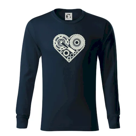 Tričko pre cyklistu, na ktorom je srdce plné cyklo dielov - reťaz, prehadzovačka, ozubené koleso...by mal potešiť všetkých cyklistov, ktorí jazdia srdcom. Cyklistické tričko ukáže, ako máte radi šport, najmä bicykel.
