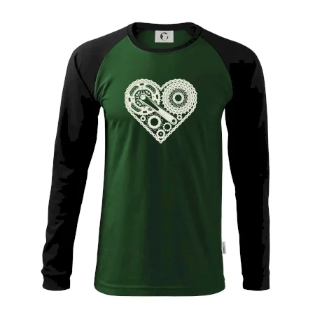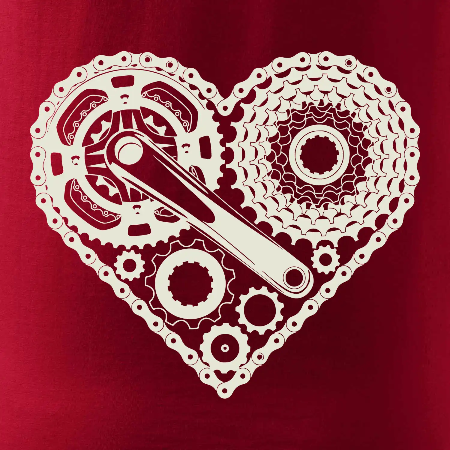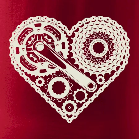Tričko pre cyklistu, na ktorom je srdce plné cyklo dielov - reťaz, prehadzovačka, ozubené koleso...by mal potešiť všetkých cyklistov, ktorí jazdia srdcom. Cyklistické tričko ukáže, ako máte radi šport, najmä bicykel.