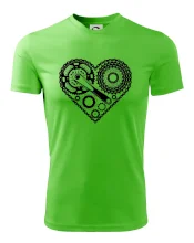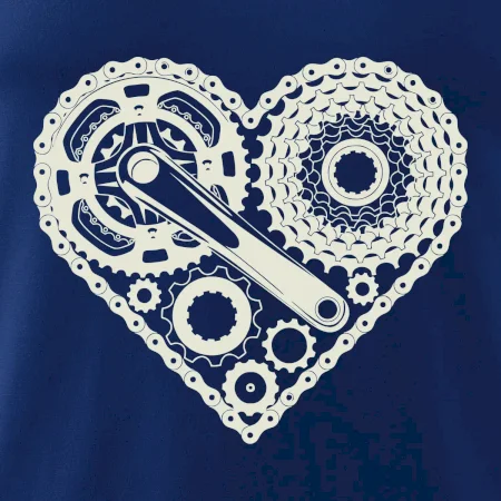 Tričko pre cyklistu, na ktorom je srdce plné cyklo dielov - reťaz, prehadzovačka, ozubené koleso...by mal potešiť všetkých cyklistov, ktorí jazdia srdcom. Cyklistické tričko ukáže, ako máte radi šport, najmä bicykel.