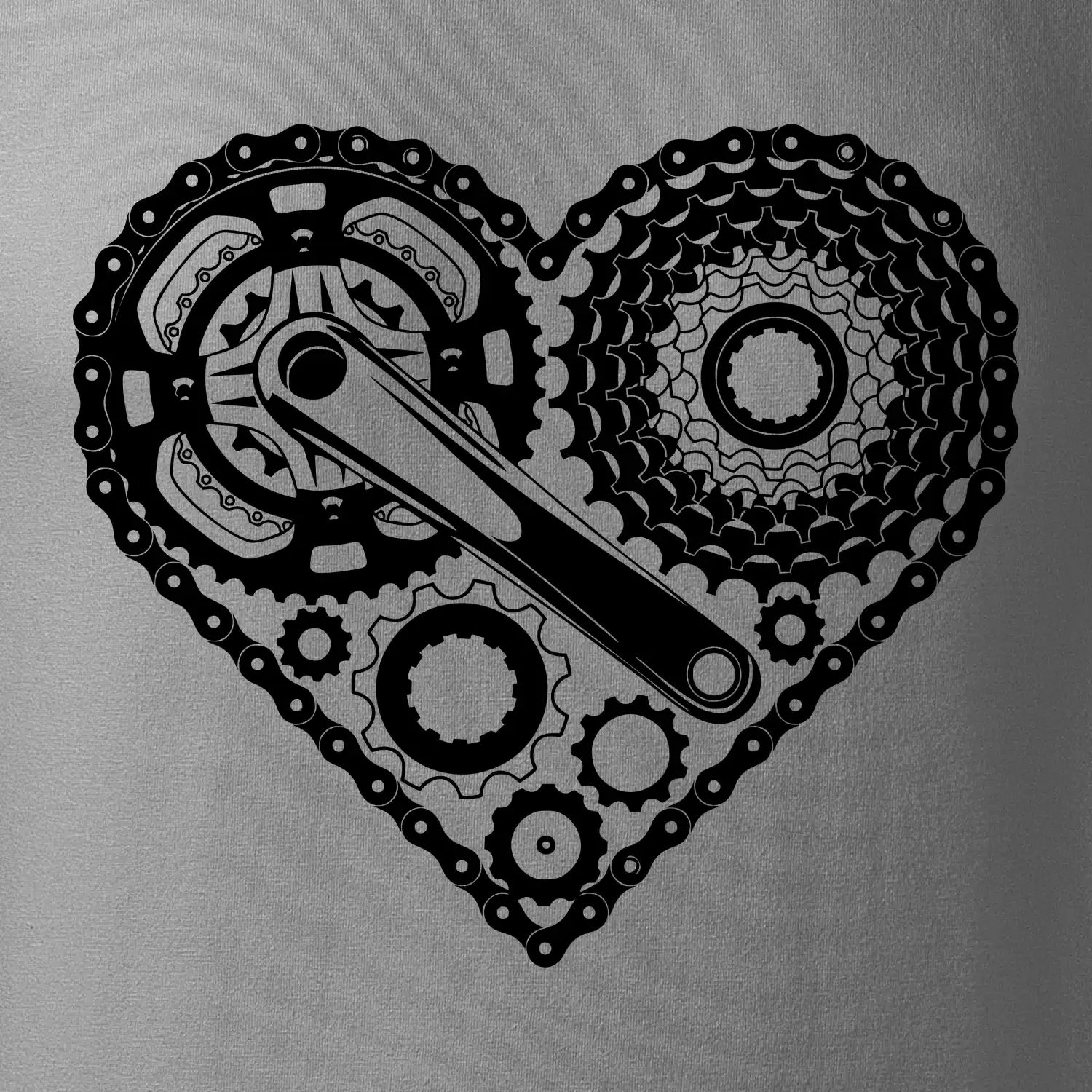 Tričko pre cyklistu, na ktorom je srdce plné cyklo dielov - reťaz, prehadzovačka, ozubené koleso...by mal potešiť všetkých cyklistov, ktorí jazdia srdcom. Cyklistické tričko ukáže, ako máte radi šport, najmä bicykel.