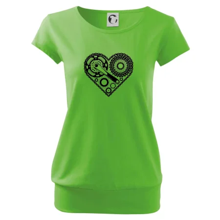 Tričko pre cyklistu, na ktorom je srdce plné cyklo dielov - reťaz, prehadzovačka, ozubené koleso...by mal potešiť všetkých cyklistov, ktorí jazdia srdcom. Cyklistické tričko ukáže, ako máte radi šport, najmä bicykel.