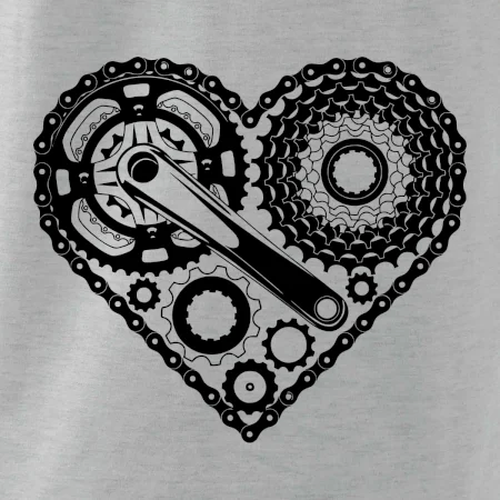 Tričko pre cyklistu, na ktorom je srdce plné cyklo dielov - reťaz, prehadzovačka, ozubené koleso...by mal potešiť všetkých cyklistov, ktorí jazdia srdcom. Cyklistické tričko ukáže, ako máte radi šport, najmä bicykel.