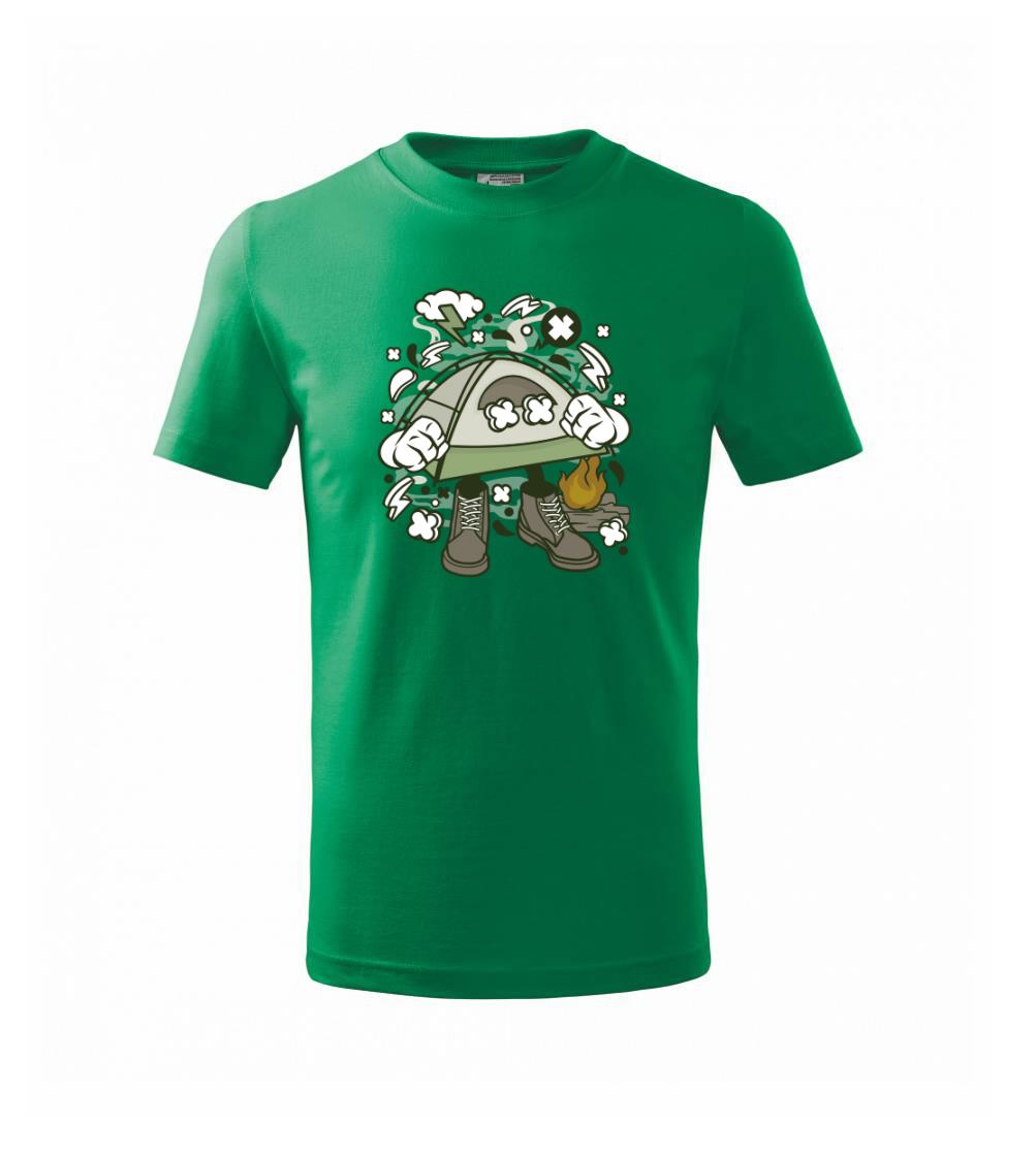 Láka ťa dovolenka pod stanom? Kempingové tričko, kde je stan a táborák je ideálnym doplnkom na takúto dovolenku.