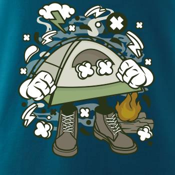 Láka ťa dovolenka pod stanom? Kempingové tričko, kde je stan a táborák je ideálnym doplnkom na takúto dovolenku.