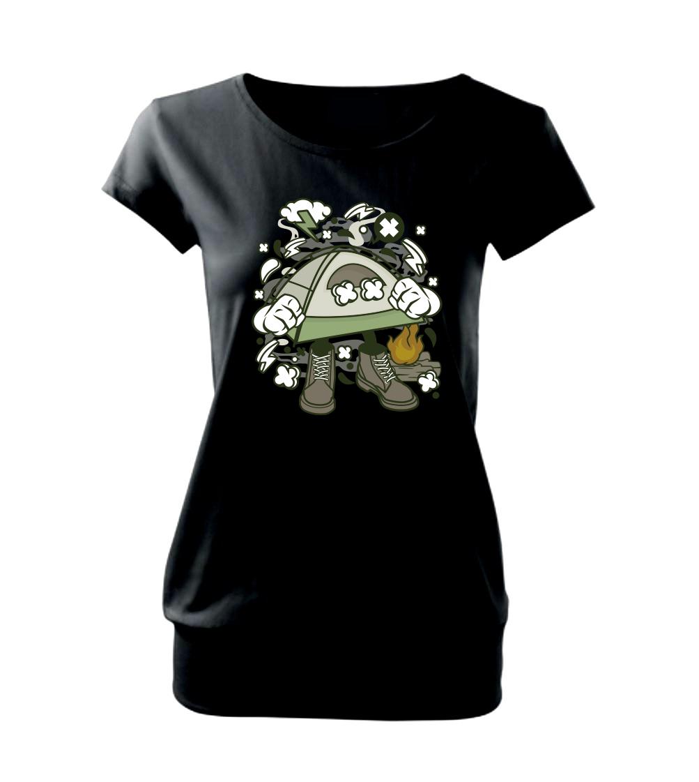 Láka ťa dovolenka pod stanom? Kempingové tričko, kde je stan a táborák je ideálnym doplnkom na takúto dovolenku.