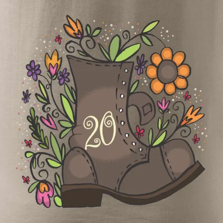 Narodeninové tričko pre oslávenca, ktorý oslavuje jubileum 20 rokov. Tričko, na ktorom je stará topánka s číslovkou 20. Darček k dvadsiatym narodeninám.