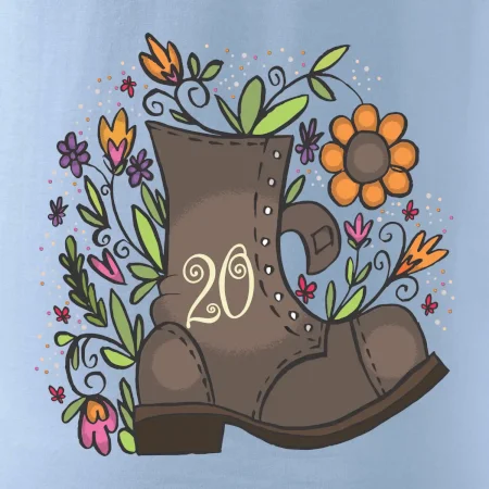Narodeninové tričko pre oslávenca, ktorý oslavuje jubileum 20 rokov. Tričko, na ktorom je stará topánka s číslovkou 20. Darček k dvadsiatym narodeninám.