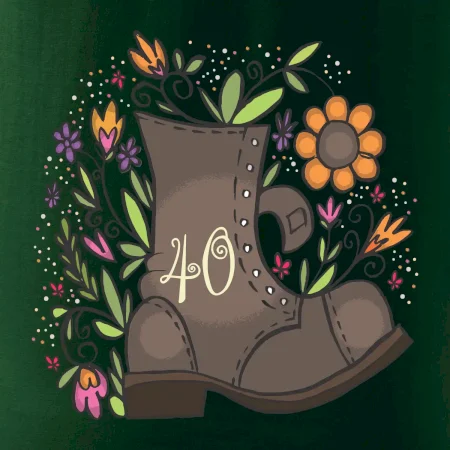 Narodeninové tričko pre oslávenca, ktorý oslavuje jubileum 40 rokov. Tričko, na ktorom je stará topánka s číslovkou 40. Darček k štyridsiatym narodeninám.