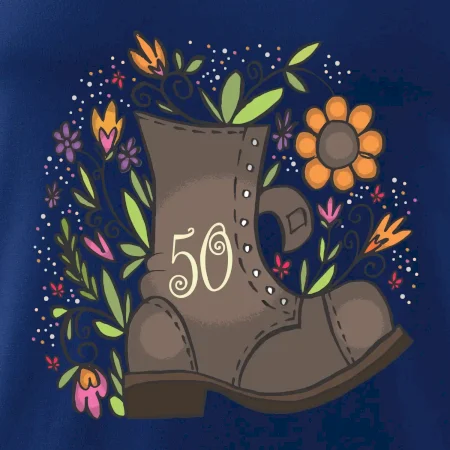 Narodeninové tričko pre oslávenca, ktorý oslavuje jubileum 50 rokov. Tričko, na ktorom je stará topánka s číslovkou 50. Darček k päťdesiatym narodeninám.