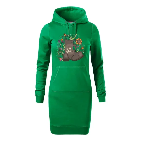 Dámske mikinové šaty MALFINI Snap 419 sú ideálnou voľbou pre ženy, ktoré hľadajú pohodlný a štýlový kúsok na voľný čas alebo každodenné nosenie. Ľahko vypasovaný strih s bočnými švami podčiarkuje ženskú siluetu, zatiaľ čo kapucňa s podšívkou a sťahovacou šnúrkou dodáva ležérny vzhľad. Šaty majú dĺžku nad kolená a sú vybavené našitým vreckom v štýle „klokanky“. Materiál je mäkký a príjemný na dotyk grâce à smesi bavlny a polyesteru s nepočesanou vnútornou stranou.