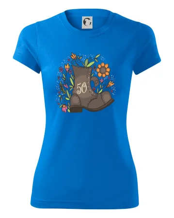 Narodeninové tričko pre oslávenca, ktorý oslavuje jubileum 50 rokov. Tričko, na ktorom je stará topánka s číslovkou 50. Darček k päťdesiatym narodeninám.