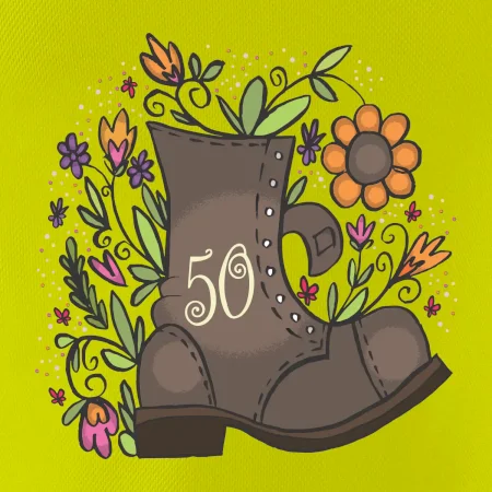 Narodeninové tričko pre oslávenca, ktorý oslavuje jubileum 50 rokov. Tričko, na ktorom je stará topánka s číslovkou 50. Darček k päťdesiatym narodeninám.