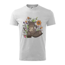 Narodeninové tričko pre oslávenca, ktorý oslavuje jubileum 50 rokov. Tričko, na ktorom je stará topánka s číslovkou 50. Darček k päťdesiatym narodeninám.