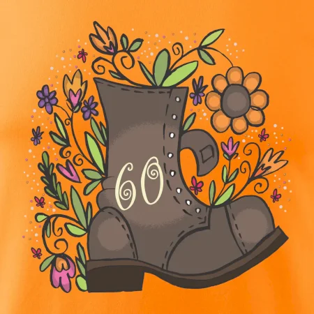 Narodeninové tričko pre oslávenca, ktorý oslavuje jubileum 60 rokov. Tričko, na ktorom je stará topánka s číslovkou 60. Darček k šesťdesiatym narodeninám.