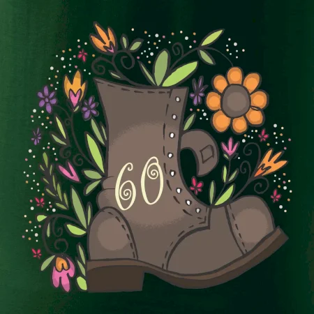 Narodeninové tričko pre oslávenca, ktorý oslavuje jubileum 60 rokov. Tričko, na ktorom je stará topánka s číslovkou 60. Darček k šesťdesiatym narodeninám.