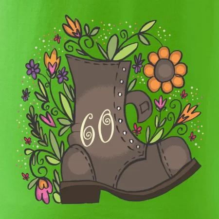 Narodeninové tričko pre oslávenca, ktorý oslavuje jubileum 60 rokov. Tričko, na ktorom je stará topánka s číslovkou 60. Darček k šesťdesiatym narodeninám.
