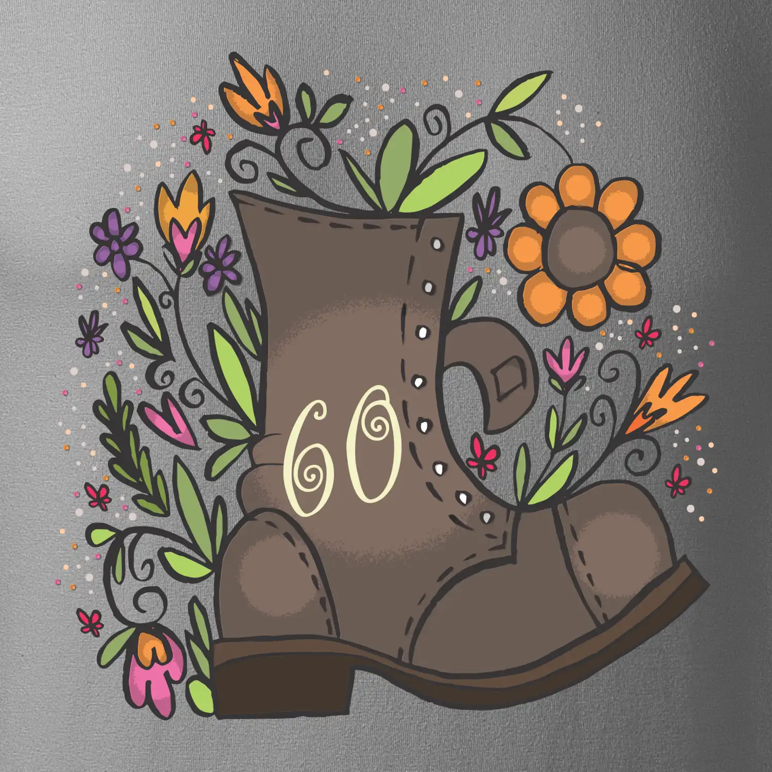 Narodeninové tričko pre oslávenca, ktorý oslavuje jubileum 60 rokov. Tričko, na ktorom je stará topánka s číslovkou 60. Darček k šesťdesiatym narodeninám.