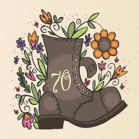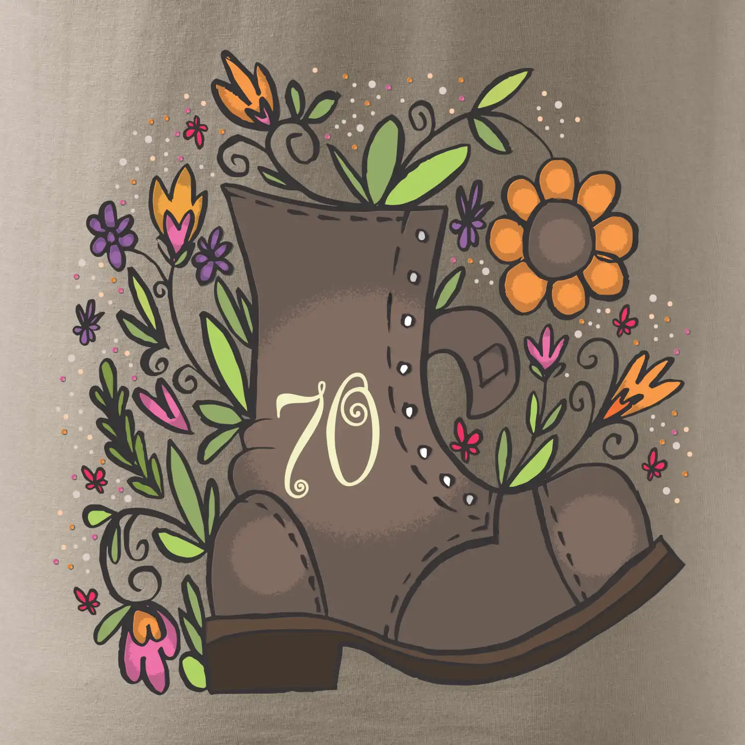 Narodeninové tričko pre oslávenca, ktorý oslavuje jubileum 70 rokov. Tričko, na ktorom je stará topánka s číslovkou 70. Darček k sedemdesiatym narodeninám.