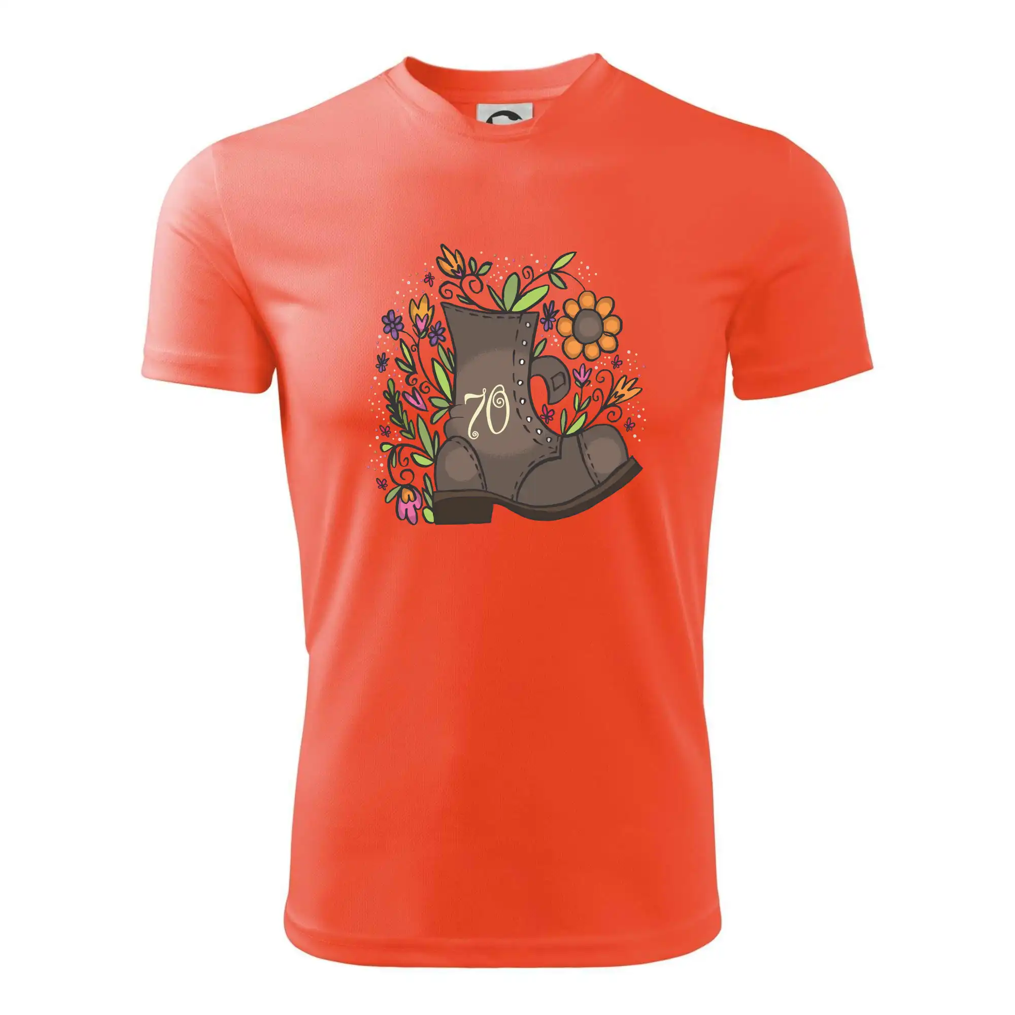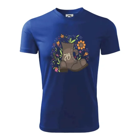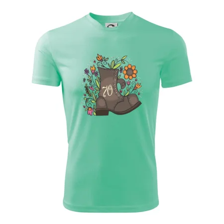 Narodeninové tričko pre oslávenca, ktorý oslavuje jubileum 70 rokov. Tričko, na ktorom je stará topánka s číslovkou 70. Darček k sedemdesiatym narodeninám.