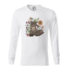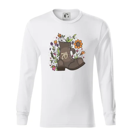 Narodeninové tričko pre oslávenca, ktorý oslavuje jubileum 70 rokov. Tričko, na ktorom je stará topánka s číslovkou 70. Darček k sedemdesiatym narodeninám.