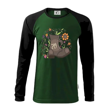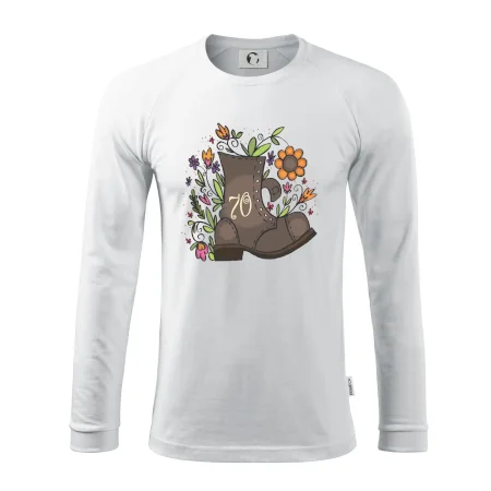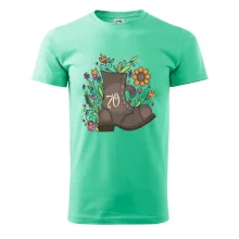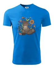 Narodeninové tričko pre oslávenca, ktorý oslavuje jubileum 70 rokov. Tričko, na ktorom je stará topánka s číslovkou 70. Darček k sedemdesiatym narodeninám.