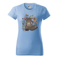 Narodeninové tričko pre oslávenca, ktorý oslavuje jubileum 70 rokov. Tričko, na ktorom je stará topánka s číslovkou 70. Darček k sedemdesiatym narodeninám.